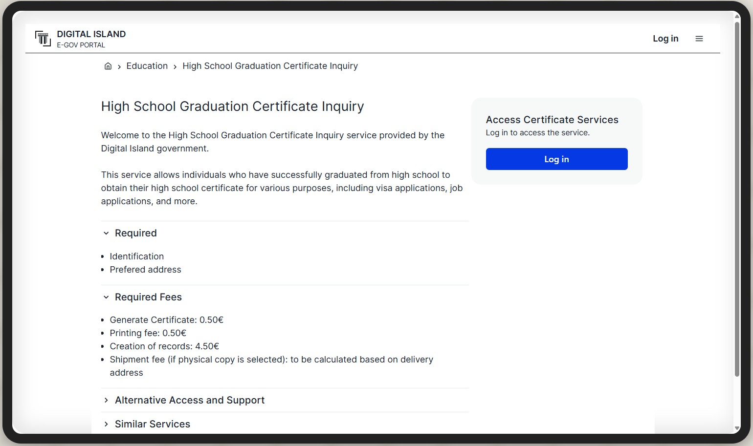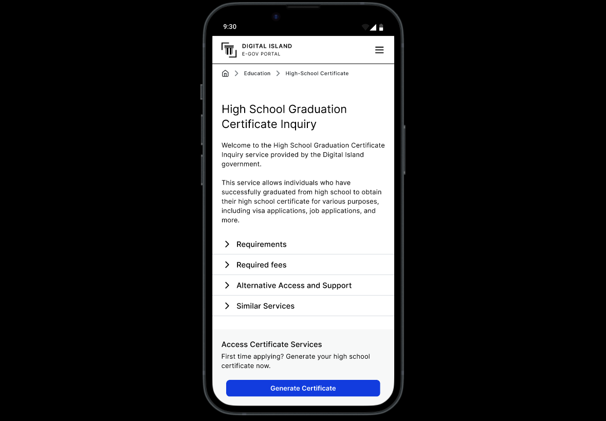 # High School Certificate - UX Demo